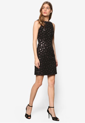 WAREHOUSE 的星星提花直筒連身裙,採金屬感星星提花印花設計,配以無袖直筒連身裙版型剪裁,設計優雅時尚。